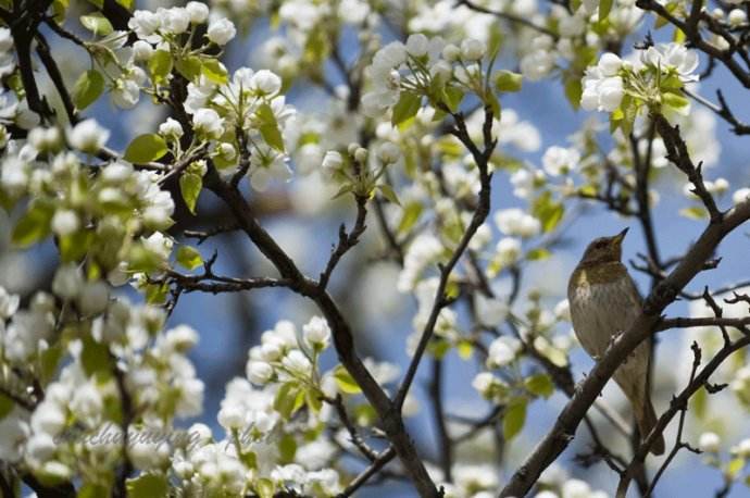 桃樹、杏樹、梨樹,你不讓我,我不讓你,都開滿了花趕趟兒。紅的像火,粉的像霞,白的像雪。花里帶著甜味兒;閉了眼,樹上仿佛已經(jīng)滿是桃兒、杏兒、梨兒?;ㄏ鲁汕С砂俚拿鄯湮宋说佤[著,大小的蝴蝶飛來飛去。野花遍地是:雜樣兒,有名字的,沒名字的,散在草叢里,像眼睛,像星星,還眨呀眨的。