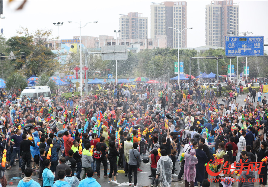 金羊網(wǎng)訊 記者湯銘明攝影報(bào)道:2017年2月27日,農(nóng)歷二月初二,“龍?zhí)ь^”的日子,東莞東坑鎮(zhèn)迎來了一個(gè)盛大而獨(dú)特的地方節(jié)日——二月初二“賣身節(jié)”。每年這個(gè)時(shí)候,東坑的居民都會(huì)舉行隆重的歡慶活動(dòng),當(dāng)中“射水狂歡”就是重頭戲!街坊們走上街頭,盡情地互相潑水,祝福的水花飛濺,場(chǎng)面熱鬧壯觀。
