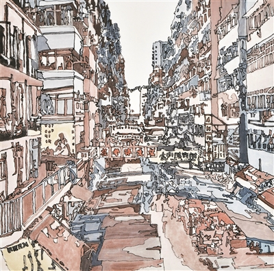 郭維孿《香港街景》