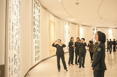 記者了解到,此次展覽從全軍遴選20位書法骨干,特邀36位著名軍旅書法家,嚴格按照“定人員、定內(nèi)容、定尺幅、定書體”的標準,潛心創(chuàng)作打磨,力求以形神兼?zhèn)?、文質兼美的優(yōu)秀作品,給觀眾以強烈的藝術感染、深刻的思想啟迪和豐厚的精神滋養(yǎng)。