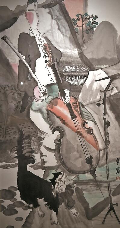 近些年看到夢露中國人物畫,特別是這次參展的作品,讓我感覺耳目一新。作品突出地強調人物造型的簡約概括,以及對現代趣味的追求和平面化的表達,畫面所表現的空間也不是簡單的立體空間,而是通過強調書寫性的線條和墨色的濃淡來表達畫面的力度感和平面空間感,使作品呈現出現代的、獨具個性的審美價值。她善于發(fā)揮傳統(tǒng)中國筆、墨、紙等媒材的特殊性,使她的水墨人物畫既能滿足應物象形的要求,又顯示出現代的抽象審美情趣;尤其是她善于通過水墨運用,包括墨色的濃淡、用水的多少、運筆運墨過程中線條的節(jié)奏與韻律,在畫面中起到烘托節(jié)奏氣氛和創(chuàng)造意境的重要作用,很好地表現了現代青年女性藝術家那種獨特細膩、敏感和某種難以言狀的情感意蘊,并使她筆下的人物具有了真正的生命活力。