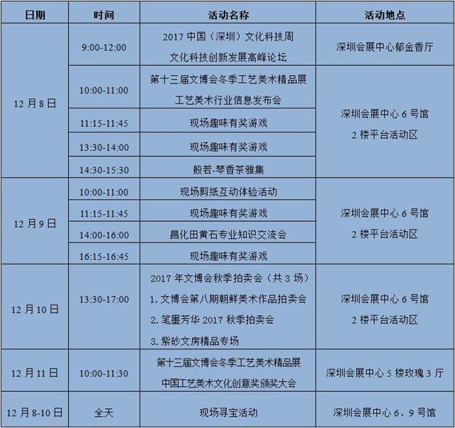 附:第十三屆文博會(huì)冬季工藝美術(shù)精品展暨2017中國(guó)(深圳)文化科技周活動(dòng)安排