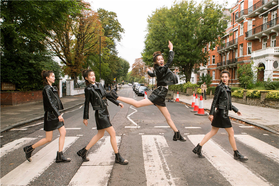 ??? 近日,金晨一組在倫敦的街拍照曝光。照片中,金晨置身于倫敦的艾比路,黑色皮衣搭配短裙大秀美腿,馬丁靴的搭配也更顯前衛(wèi)時髦。與以往或優(yōu)雅或復古的街拍不同,金晨此次歡脫地模仿起披頭士過馬路的經(jīng)典畫面,一人cos披頭士四位成員,可謂創(chuàng)意十足。而她時不時做出旋轉(zhuǎn)跳躍的高難度的動作,令不少網(wǎng)友紛紛表示:為金晨瘋狂打call。