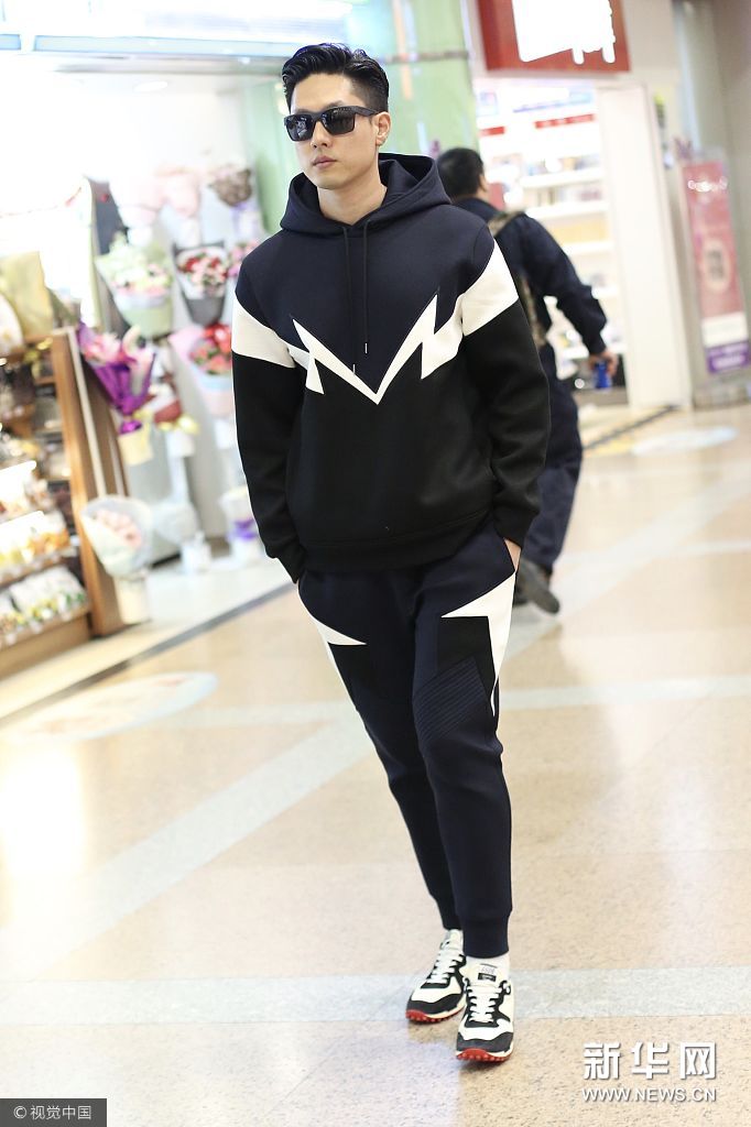 凌瀟肅迎運(yùn)動套裝低調(diào)現(xiàn)身 戴墨鏡型男范
