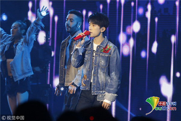 ??? 北京,12月12日晚,王俊凱、易烊千璽現(xiàn)身某活動,兩人身穿牛仔外套獻唱嗨翻全場,又換上紅色衛(wèi)衣舉廣告宣傳標語