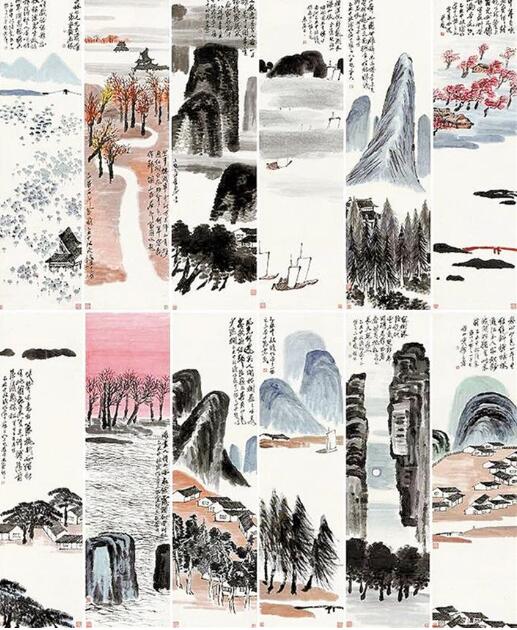 齊白石《山水十二條屏》創(chuàng)作于1925年,那一年齊白石62歲,正是他老年改變繪畫風(fēng)格的第四個年頭。他拋卻此前中國山水的程式,進(jìn)入“一洗凡塵萬事空”的真山真水創(chuàng)作境界,這件作品幾乎囊括了齊白石所有山水畫題材,而且每屏上均題有自作詩,鈐蓋齊白石常用印章,“詩書畫印”四絕俱全,堪稱其對山水創(chuàng)作升華后的集大成者?!?記者張 漫子)