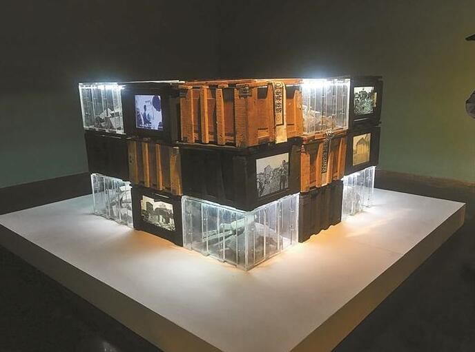 應(yīng)天齊的裝置作品《廢墟魔方》。