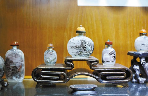 據(jù)楊藝介紹,明末清初,鼻煙作為貢品開始傳入我國,這些進(jìn)貢的鼻煙用玻璃瓶盛裝,以防止其味道散失,并以瓶的大小標(biāo)示鼻煙計量。王士禎在《晉祖筆記》中記載:“鼻煙以玻璃為瓶貯之。瓶之形象種種不一,顏色具紅黃紫白黑綠諸色,白如水晶,紅如火齊,極可愛玩,以象齒為匙,就象鼻之,遠(yuǎn)納于瓶?!彼耐怀鲐暙I(xiàn)就在于,把紙上畫和寫的藝術(shù),經(jīng)過工具、操作等多方面的革新,改在為玻璃或水晶煙壺內(nèi)壁反面上作畫,其難、其奇,真可謂巧奪天工。內(nèi)畫煙壺的創(chuàng)作在光緒年間達(dá)到鼎盛。收藏界認(rèn)為它集中國工藝美術(shù)之大成的袖珍藝術(shù),是詩書畫并茂的藝術(shù)精品。