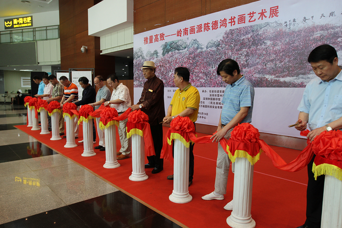 深圳新聞網(wǎng)訊(記者周錦春 通訊員孫善文)5月6日,雷州籍嶺南畫派青年畫家陳德鴻書畫藝術(shù)展在寶安區(qū)石巖文化藝術(shù)中心舉行,這是陳德鴻舉辦的第三十五場(chǎng)個(gè)人作品展,也是其在深圳地區(qū)舉辦的第七場(chǎng)。 本次畫展由寶安區(qū)美術(shù)家協(xié)會(huì)主辦,石巖街道黨建服務(wù)中心、深圳市雷州商承辦,廣東電視臺(tái)、深圳市湛江商會(huì)、深圳鐘國(guó)康印館、《書法報(bào)》深圳站、《伶仃洋》雜志社等單位協(xié)辦,展出了陳德鴻近期創(chuàng)作的60幅書畫作品, 200多名書畫名家和書法愛(ài)好者到場(chǎng)欣賞、祝賀,廣東電視臺(tái)及深圳多家媒體現(xiàn)場(chǎng)采訪報(bào)道。 ? “雅量高致”為陳德鴻在藝術(shù)上取得相當(dāng)突顯的成績(jī)后,其大學(xué)導(dǎo)師、書畫名家周彥生先生所題贈(zèng),其意為氣度寬宏,情致高雅,雅正不俗。這四個(gè)字也成為本次展覽的主題。 嶺南畫派成立于上世紀(jì)三十年代,秉承“折衷中外,融合古今”這一宗旨,不但保留了屬于自己的藝術(shù)風(fēng)格及繪畫理念,還將至適應(yīng)時(shí)代發(fā)展,創(chuàng)制出有時(shí)代精神、有地方特色、氣氛酣暢熱烈、筆墨勁爽豪縱、色彩鮮艷明亮、水墨淋漓、暈染柔和勻凈的現(xiàn)代繪畫新格局。 陳德鴻2004年畢業(yè)于廣州美術(shù)學(xué)院。求學(xué)期間,得到了關(guān)山月、黎雄才、陳金章、周彥生、林豐俗、劉書民等嶺南名家的指導(dǎo),從而為今日的異彩奠定了堅(jiān)實(shí)的基礎(chǔ)。在本科時(shí)期又直接受教于李勁堃老師、張彥老師。畢業(yè)后,他一直住在廣州美術(shù)學(xué)院,跟隨導(dǎo)師們上山下鄉(xiāng)寫生創(chuàng)作,前后整整十年,繪畫水平漸露崢嶸,并得到了導(dǎo)師的喜愛(ài)和贊賞。 十多年來(lái),陳德鴻常往云南、山西、河南、廣西、安徽等地寫生,行萬(wàn)里路,讀萬(wàn)卷書,十年風(fēng)雨使得他有開拓的眼界來(lái)審視自身的繪事。在藝術(shù)的道路上,他不斷地探索著,在大自然間理解傳統(tǒng)繪畫的筆墨結(jié)構(gòu)與自然結(jié)構(gòu)。這種繪畫軌跡,亦是陳德鴻探索時(shí)期的痕跡,墨氣輕重有度,使得樸素人生詩(shī)意盎然。廣東省宣傳部原副部長(zhǎng)胡中梅和區(qū)美術(shù)家協(xié)會(huì)主席閻敏在看了畫展后認(rèn)為,陳德鴻的作品畫面布局開合有致,氤氳雅麗,寫出了意境,體現(xiàn)出他對(duì)筆墨技法的運(yùn)用已經(jīng)純熟自如,返璞歸真,其作品意境獨(dú)特、功力深厚、構(gòu)圖新穎、集中體現(xiàn)了畫家的自然觀與社會(huì)審美意識(shí)。