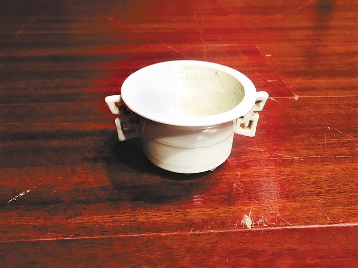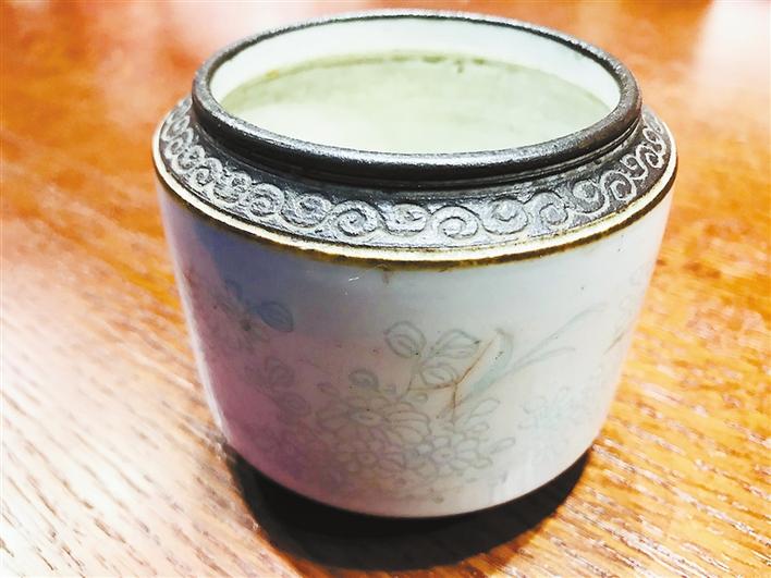 ▲藏友帶來(lái)的“清德化甜白釉香爐”(上)和“清末民初鐵箍泥刻花卉紋筆洗”。 (吳冠甫 攝)