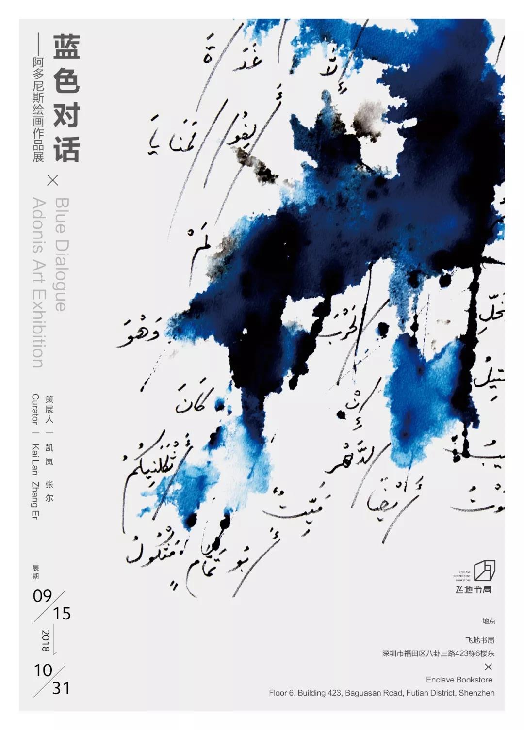 飛地書(shū)局將于9月15日至10月31日展出“藍(lán)色對(duì)話——阿多尼斯繪畫(huà)作品展”。展覽由凱嵐與張爾策劃,呈現(xiàn)詩(shī)人阿多尼斯五個(gè)系列的繪畫(huà)。