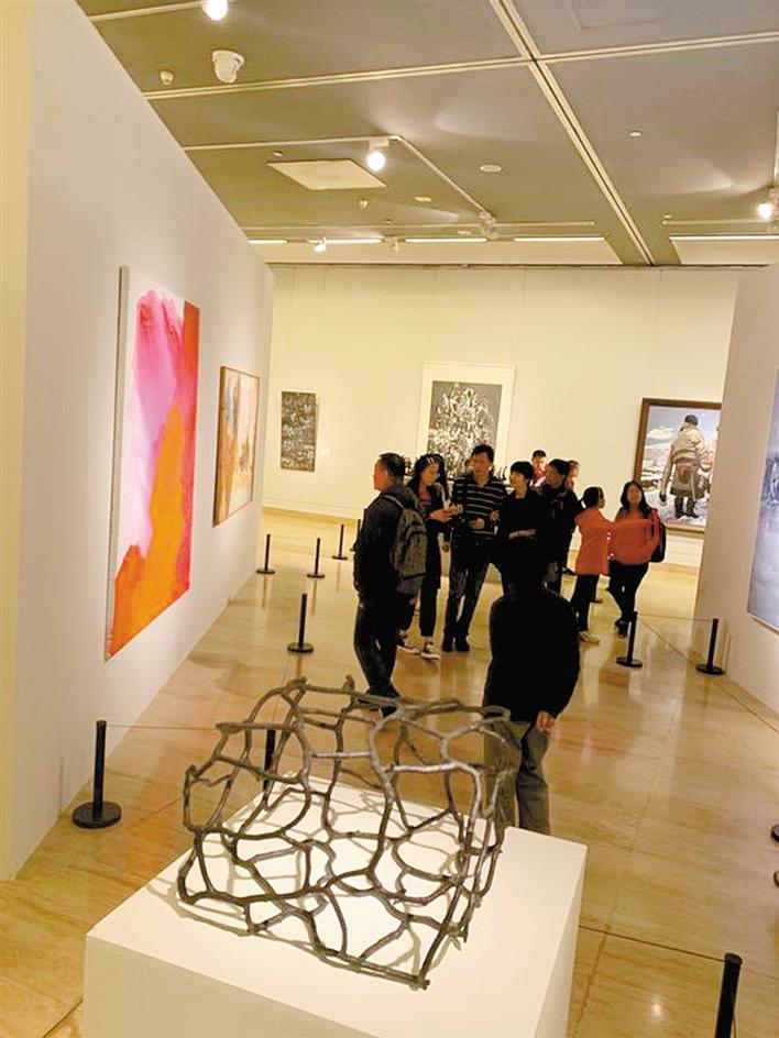 據(jù)了解,作為深圳有史以來(lái)規(guī)模最大的晉京美術(shù)展覽,“打開(kāi)的窗口是美麗的——慶祝新中國(guó)成立70周年暨深圳建市40周年美術(shù)作品展”從3月29日在中國(guó)美術(shù)館開(kāi)展以來(lái),在北京掀起了一股觀展熱潮。展期十天,吸引了超過(guò)6萬(wàn)觀眾參觀展覽,平均每天的參觀量超過(guò)5000人,清明小長(zhǎng)假期間更是每天接待觀眾近萬(wàn)人次。很多觀眾慕名而來(lái),“這位觀眾就是連續(xù)兩天前來(lái)看展的?!闭褂[期間在展廳值班的深圳美術(shù)館副館長(zhǎng)王子蚺指著一張照片告訴記者。