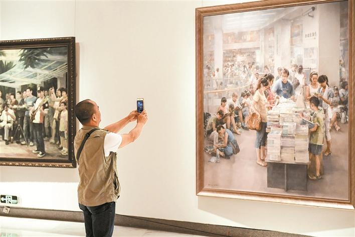 開窗便看見了美麗的風(fēng)景。開展當(dāng)天美術(shù)館剛一開門就吸引了不少市民前來觀看。他們懷著迫切的心情,第一時間趕來,一睹美術(shù)作品中的“深圳故事”。