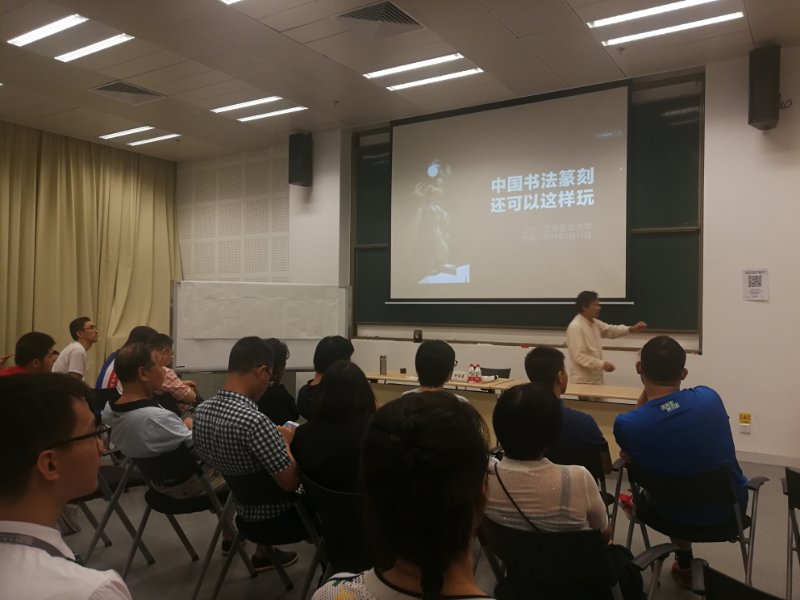 在2個(gè)小時(shí)的講座中,鐘國(guó)康妙語(yǔ)連珠,用生動(dòng)幽默的語(yǔ)言將博大精深的書(shū)法篆刻文化表現(xiàn)得淋漓盡致,講座現(xiàn)場(chǎng)掌聲連連。鐘國(guó)康認(rèn)為,書(shū)法篆刻之術(shù),只有筆性、墨性、石性、紙性、心性,全方位嚴(yán)謹(jǐn),筆力勁駿,心手相應(yīng),技藝熟練,才能做到庖丁解牛,勢(shì)如破竹,可進(jìn)可退,正可謂“惟習(xí)之至熟,自可心手相應(yīng)”。他還現(xiàn)場(chǎng)潑墨揮毫,演示篆書(shū)的寫(xiě)法,詳細(xì)講解并現(xiàn)場(chǎng)演示了篆刻的方法,重點(diǎn)分享自己在單刀法和雙刀法上的獨(dú)特見(jiàn)解。單刀法要“有多狠刻多狠,有多猛刻多猛,有多深刻多深,有多長(zhǎng)線條刻多長(zhǎng)線條”,而雙刀法即在“單刀之回馬槍重刻一遍相反之單刀法”。一些幸運(yùn)的書(shū)法、篆刻愛(ài)好者還通過(guò)搶答的方式,獲贈(zèng)書(shū)法篆刻作品。(通訊員 孫善文)