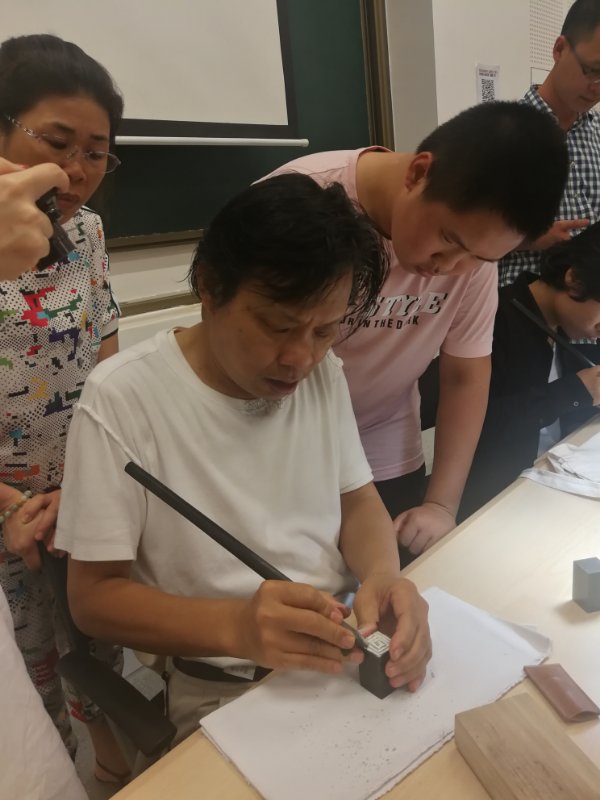 著名書(shū)法篆刻家鐘國(guó)康在講座現(xiàn)場(chǎng)演示篆刻的方法