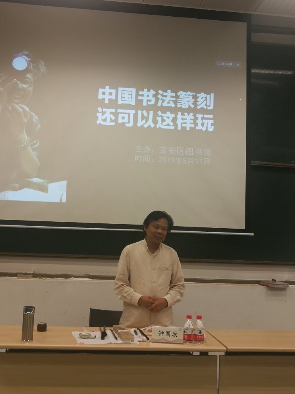 深圳新聞網(wǎng)5月11日訊(通訊員 孫善文)書(shū)法篆刻是優(yōu)秀的傳統(tǒng)文化,蘊(yùn)含了中華千年文化的精粹。上午,著名書(shū)法篆刻家鐘國(guó)康在寶安圖書(shū)館舉辦專題講座,向到場(chǎng)的書(shū)法、篆刻愛(ài)好者分享了自己五十年來(lái)的書(shū)法、篆刻心得和經(jīng)驗(yàn),給大家?guī)?lái)了一場(chǎng)有思想、有內(nèi)容、有美感的藝術(shù)盛宴,在場(chǎng)人員無(wú)不受益良多。