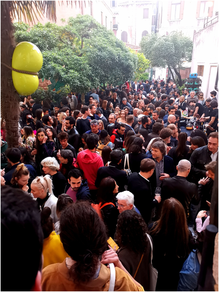 本屆威尼斯藝術(shù)雙年展覽藝術(shù)總監(jiān)為拉夫?魯戈夫(Ralph Rugoff),展覽名為“愿你生活在有趣的時代"(May You Live in Interesting Times)。全球藝術(shù)事務(wù)基金會,是荷蘭非營利組織,負(fù)責(zé)歐洲文化中心(European Cultural Centre)在莫拉宮和本博宮等五個主要展館主辦的大型國際展,邀請了世界各地優(yōu)秀藝術(shù)家參展,展覽現(xiàn)場人山人海,人流量大大超過以往,參觀者大多是來自世界各地藝術(shù)家與藝術(shù)愛好者、藏家、畫廊、策展人、及藝術(shù)機構(gòu)等。