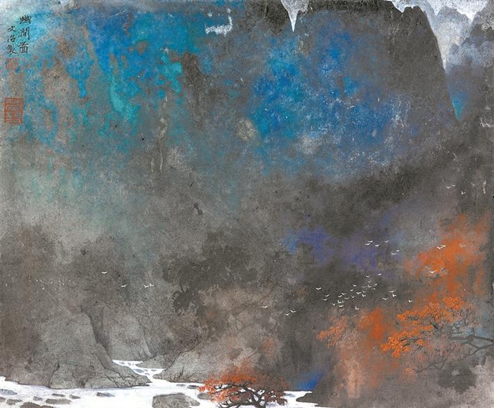 晚年,宋文治開始了以潑彩法入畫,在嚴(yán)謹(jǐn)?shù)姆ǘ戎腥谌肓嗽S多偶發(fā)性的生動效果,畫面從此氤氳彌漫、色彩斑斕,其個(gè)人風(fēng)格亦發(fā)生了較大變化,使“宋家山水”的面貌進(jìn)一步得到確立。此次展覽共展出宋文治所創(chuàng)作的四十多件精品,這些作品主要展現(xiàn)宋文治藝術(shù)從“中年出新”到“老年求變”的創(chuàng)作軌跡及藝術(shù)面貌。