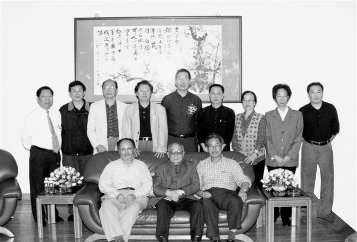 宋文治與一眾畫家在深圳。前排左起:王子武、宋文治、盧沉,后排左起:郭炳安、王晉元、苗重安、李寶林、董小明、林墉、王玉玨、盧輔圣、盧禹舜。