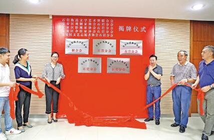 寶安日報2019年07月02日訊(記者 張浩 通訊員 羅宇文 實習(xí)生 陳品翰 文/圖)近日,石巖街道文學(xué)藝術(shù)界聯(lián)合會、區(qū)戲劇家協(xié)會石巖分會、區(qū)影視家協(xié)會石巖分會、區(qū)攝影家協(xié)會石巖分會、區(qū)雜技家協(xié)會石巖分會、區(qū)文藝志愿者協(xié)會石巖分會揭牌儀式在石巖街道舉行。各協(xié)會成立后將進(jìn)一步挖掘、利用石巖的文化資源,推動文化事業(yè)蓬勃發(fā)展。區(qū)文聯(lián)、石巖街道等單位領(lǐng)導(dǎo)出席了揭牌儀式。