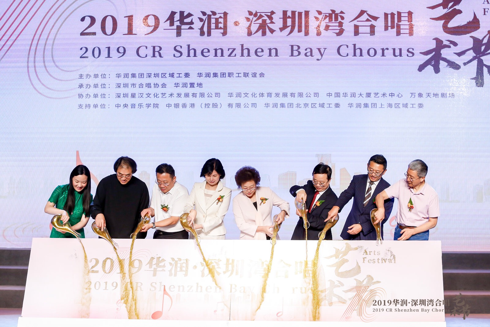 藝術(shù)節(jié)開幕式于9月20日在中國華潤大廈藝術(shù)中心舉行,華潤集團(tuán)馬璐董事、潘福董事,深圳市相關(guān)領(lǐng)導(dǎo)、藝術(shù)節(jié)藝術(shù)總監(jiān)陳光輝、中央音樂學(xué)院原副院長、教授周海宏等出席。來自深圳市的3家外部合唱團(tuán)以及華潤合唱團(tuán)聯(lián)隊(duì),分別獻(xiàn)唱了《讓我們蕩起雙槳》《迎來春色換人間》《我和我的祖國》等經(jīng)典曲目。