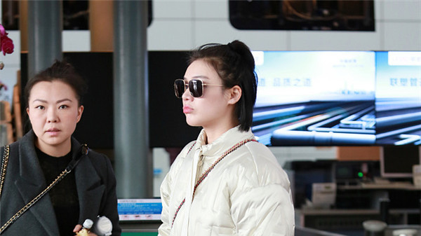 2017年12月14日,何穗現(xiàn)身機(jī)場(chǎng),手插口袋御寒戴白色羽絨帽喜感足。