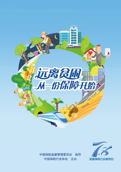 以7·8Logo為中心的光圈,周邊是日常生活的剪影,寓意著保險似陽光雨露,惠及人民群眾生產(chǎn)、生活的方方面面,反映了保險扶貧精準(zhǔn)服務(wù)、缺口補(bǔ)位的功能。