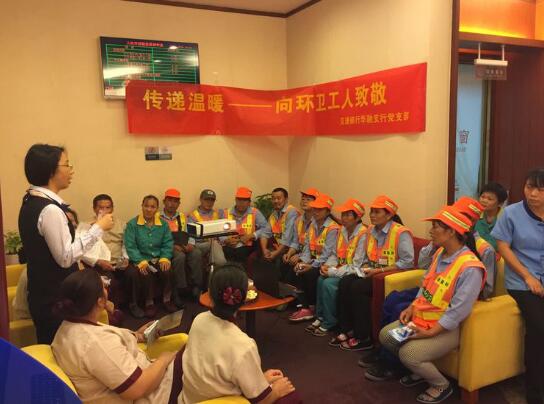 日前,交通銀行深圳華融支行黨支部在深圳華融大廈開展了"傳遞溫暖,向環(huán)衛(wèi)工人致敬"活動(dòng)。