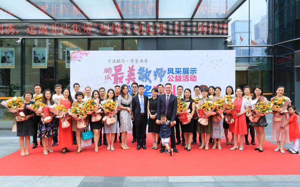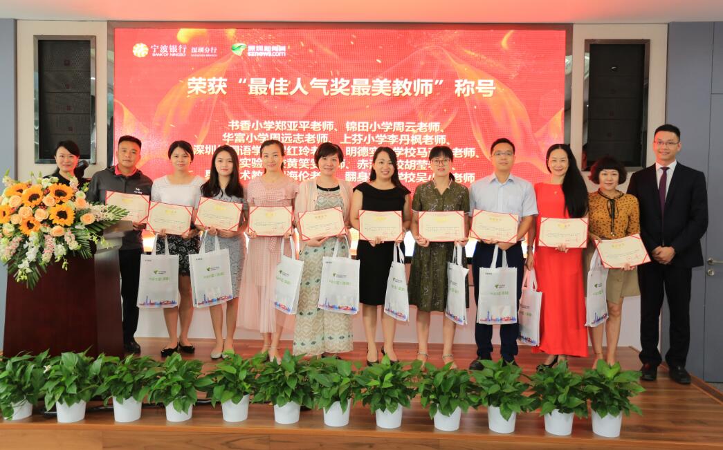 深圳新聞網(wǎng)訊 (記者朱琳江書劍)“國(guó)將興,必貴師而重傅?!崩蠋熥鳛椤白饚熤氐馈本竦谋憩F(xiàn)主體,傳道受業(yè)解惑,為社會(huì)發(fā)展不斷輸送著優(yōu)質(zhì)人才。2018年9月8日教師節(jié)前夕,由深圳新聞網(wǎng)、寧波銀行深圳分行聯(lián)合主辦的首屆“鵬城最美教師”風(fēng)采展示公益活動(dòng)頒獎(jiǎng)儀式在寧波銀行深圳分行隆重舉行?;顒?dòng)自2018年3月2日啟動(dòng)以來,吸引了深圳市各中小學(xué)校的廣泛關(guān)注,經(jīng)過半年時(shí)間的尋找與舉薦,共有34位優(yōu)秀教師獲“鵬城最美教師”殊榮。其中有10位教師,通過網(wǎng)絡(luò)獻(xiàn)花獲得“最佳人氣獎(jiǎng)最美教師”榮譽(yù)稱號(hào)。