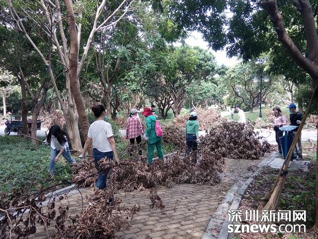 9月22日,臺風過后小長假的第一天,深圳農(nóng)村商業(yè)銀行積極響應(yīng)深圳市城管局和人大代表“人人行動,一起清潔美麗家園”的倡議,在全行發(fā)起了“愛心清理中心公園,還深圳一片干凈祥和”的志愿活動,全行70多名員工和家屬自發(fā)組成義工隊,利用中秋小假期來到深圳市中心公園,積極參與搬運殘枝斷木,清潔落葉垃圾的活動。在清理公園路障過程中,深圳農(nóng)商行員工分工明確,男士負責倒塌樹枝、樹樁的疏通與清理,女士則主要負責零散枝丫、落葉的清掃。而當清理至公園受災(zāi)最嚴重區(qū)域時,深圳農(nóng)商行義工隊成員齊上陣,兩手并用,或是用力拖拽巨大的倒塌樹枝,或是通力協(xié)作抬抱沉重的實木樁,來來回回不斷將攔路樹枝收拾整齊歸攏到路邊,以方便公園管理處人員后續(xù)處理。此次清理工作持續(xù)了約3小時,基本恢復了公園中心區(qū)綠道的通暢與整潔。路過的行人得知他們是義務(wù)進行清理時,無不駐足稱贊,而參與此次活動的所有深圳農(nóng)商行人也同樣為自己感到驕傲。