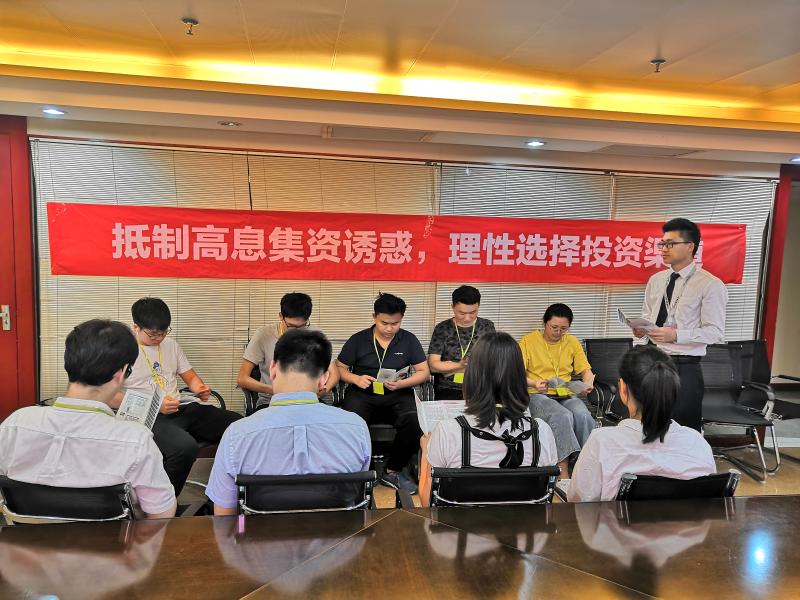 地鐵大廈支行則在深圳市銀服通企業(yè)管理咨詢有限公司舉行金融知識小講座。通過發(fā)放宣傳折頁、懸掛橫幅、現(xiàn)場講解等形式,緊緊圍繞識別抵制高息集資誘惑、做好財務規(guī)劃、選擇適當?shù)漠a(chǎn)品投資理財?shù)戎R進行講解。同時溫馨提示企業(yè)員工在辦理銀行卡、匯款、房貸還款等業(yè)務時的小竅門,獲企業(yè)員工一致好評。