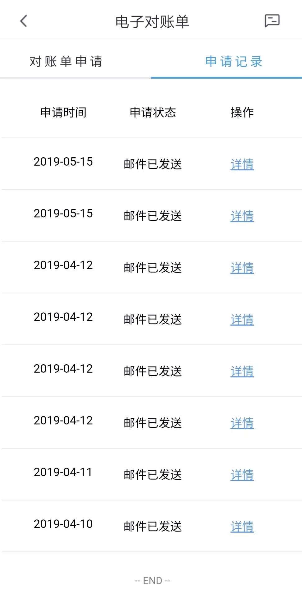 叮咚,電子對(duì)賬單已到達(dá)郵箱!點(diǎn)擊申請(qǐng)記錄,還可以查詢郵件發(fā)送進(jìn)度哦!