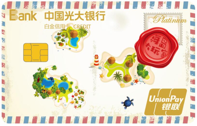 光大海島大玩家主題信用卡以海島懷舊信封為主卡面,配以3D打印工藝的紅色“海島大玩家”字樣火漆印,象征熱衷海島游的旅行者身份。海島大玩家主題信用卡還配有海島風(fēng)個(gè)性的異型卡,好玩又便捷的“PAPA圈”可讓旅行者們?cè)诤_呌瓮鏁r(shí)佩戴,隨時(shí)刷卡消費(fèi);造型可愛的“人字拖”異型卡可懸掛在背包、手機(jī)上作為裝飾品,而其超強(qiáng)的防水功能更能陪旅行者一同游泳潛水,讓每一次刷卡消費(fèi)都是一次個(gè)性的彰顯。
