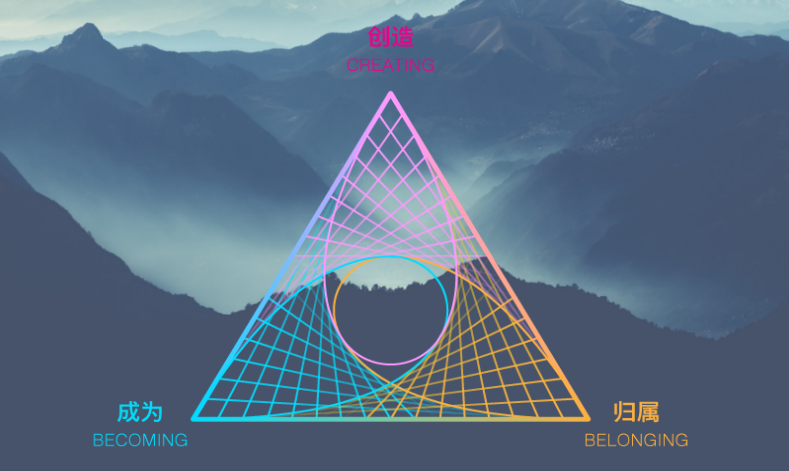 在這兩個(gè)維度的基礎(chǔ)上,陳瑋教授增加了Creating“創(chuàng)造”這個(gè)維度。Creating“創(chuàng)造”,是我給這個(gè)世界留下的精神和物質(zhì)遺產(chǎn),世界因你而變。在成為和歸屬完成之后,人生的使命是創(chuàng)造,是我們給這個(gè)世界帶來的更新與升級(jí)。當(dāng)我們問,未來會(huì)是什么樣?我們真正要問的是:我,將為這個(gè)世界創(chuàng)造什么?