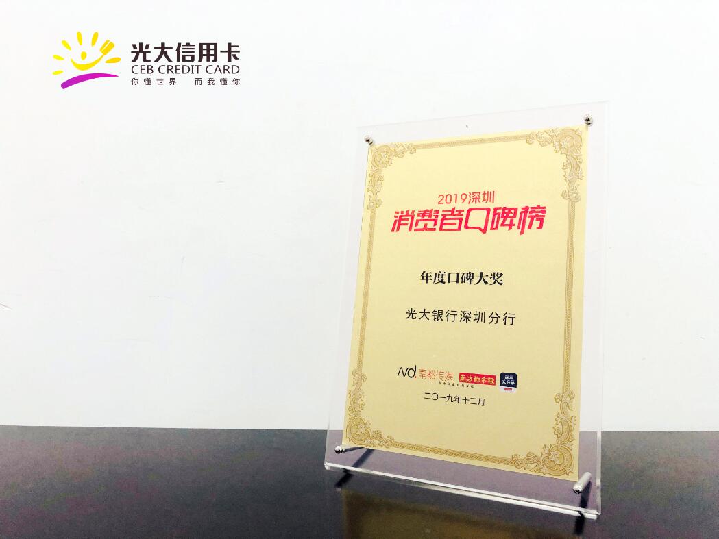近年來光大銀行深圳分行積極開拓貼近民生的消費場景,努力踐行“市場即獲客,獲客即市場”理念,加強場景建設(shè),提升客戶活躍度及品牌影響力,最終從百家機構(gòu)角逐中脫引而出,榮獲“2019年度消費者口碑獎”,成為致敬改革開放40周年經(jīng)典品牌。