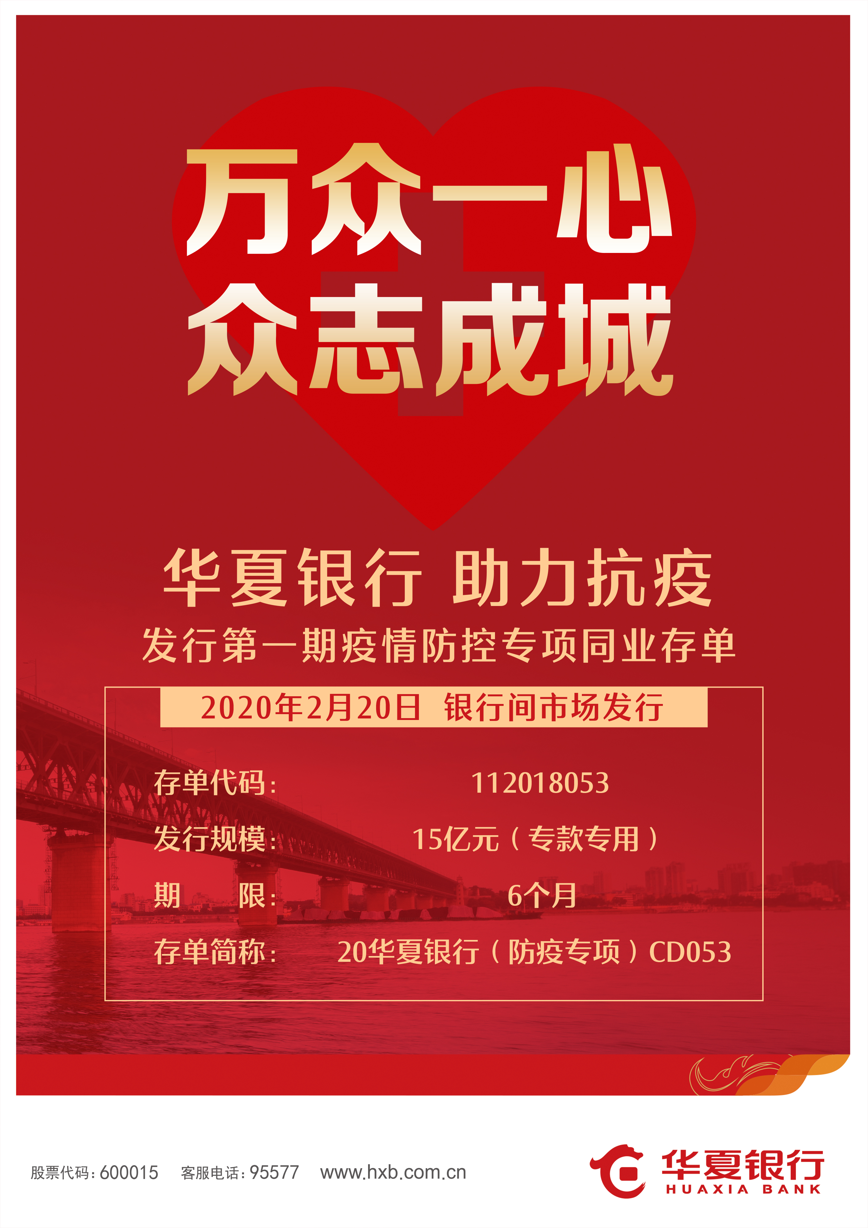 深圳新聞網(wǎng)2月20日訊 華夏銀行迅速響應(yīng)人民銀行疫情防控相關(guān)工作要求,于2月20日在全國銀行間市場成功發(fā)行疫情防控專項同業(yè)存單,為疫情防控提供資金支持。本期防疫專項存單發(fā)行規(guī)模15億元,發(fā)行期限6個月,發(fā)行利率2.40%,發(fā)行獲得了各類投資機構(gòu)的廣泛關(guān)注,投資者涵蓋城商行、農(nóng)商行、證券公司和基金公司等不同類型的20多家金融機構(gòu)。