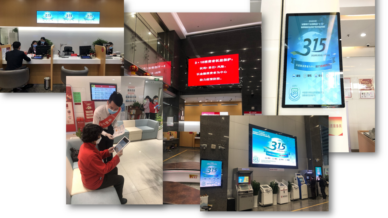 受疫情影響,在今年的3.15宣傳教育活動期間,招商銀行深圳分行因時制宜,充分借助互聯(lián)網(wǎng)媒體渠道,加大線上宣教推廣力度。其中,原創(chuàng)漫畫、視頻等已在中國銀行業(yè)協(xié)會、中國人民銀行深圳市中心支行、招商銀行總行以及信用卡中心的官方微信、微博等各大平臺競相上線,獲得了消費者的廣泛好評。同時,在手機銀行 App網(wǎng)點線上店開辟“消保有招”3.15專欄,不斷開創(chuàng)新的宣傳場景和消費者觸點。結合電臺廣播交通頻率1062、新聞898、音樂971等傳統(tǒng)媒體平臺在早晚高峰期循環(huán)播放活動主題,以短平快、覆蓋廣的方式大力推動金融宣教工作,進一步擴充宣傳渠道和受眾面。同時,以營業(yè)廳為陣地,通過跑屏、電子海報機、電視等多媒體設備播放宣傳素材,多種渠道共同推廣打造立體宣教格局,覆蓋更多消費者群體進一步增強影響力。