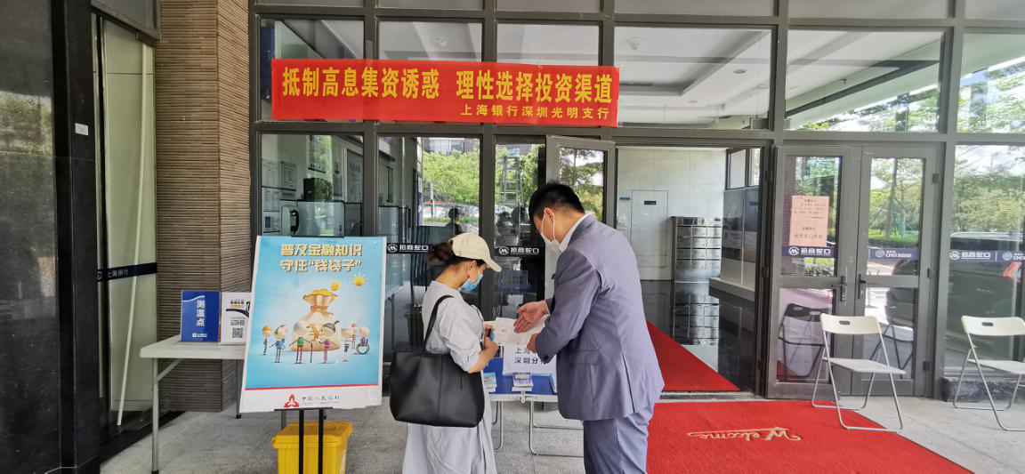 活動(dòng)期間,上海銀行深圳分行在轄內(nèi)支行的營(yíng)業(yè)場(chǎng)所內(nèi)通過LED電子屏、電子海報(bào)屏、電視滾動(dòng)播出“信用卡不是搖錢樹,刷卡消費(fèi)要適度”“莫讓校園貸‘貸’走你的青春”“不眼紅高額回報(bào),不落入陷阱圈套”等活動(dòng)宣傳口號(hào)和防范非法集資微動(dòng)畫,在公共教育區(qū)擺放金融知識(shí)主題折頁(yè),向到店客戶傳授防范電信詐騙小常識(shí)。