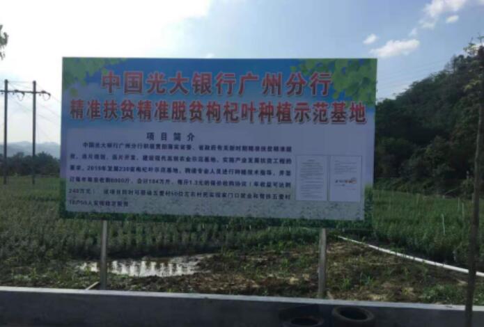 其中,廣州分行投入14萬元支持廣東省陽山縣五愛村發(fā)展250畝枸杞葉種植產(chǎn)業(yè),該項目在第二年起,每年可帶來經(jīng)濟效益約200萬元,同時可帶動五愛村約50位村民實現(xiàn)家門口就業(yè)和幫扶五愛村貧困戶18戶55人實現(xiàn)穩(wěn)定脫貧。
