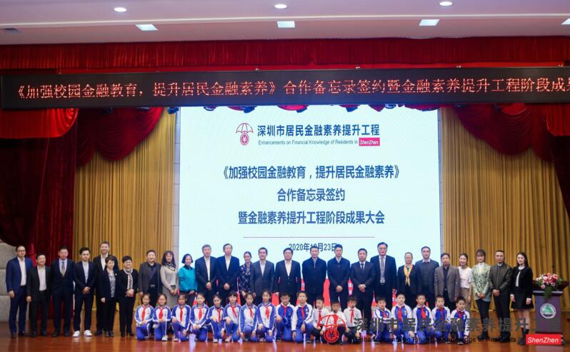 深圳新聞網(wǎng)·見圳客戶端2020年12月29日訊 近日,由中國人民銀行深圳市中心支行、深圳銀保監(jiān)局、深圳證監(jiān)局、深圳市地方金融監(jiān)督管理局、深圳證券交易所、深圳市教育局、福田區(qū)人民政府主辦,深圳市民政局協(xié)辦的《加強校園金融教育,提升居民金融素養(yǎng)》合作備忘錄簽約暨金融素養(yǎng)提升工程階段成果大會在福田實驗僑香學校舉行。深圳市政府、相關機構(gòu)領導,市各金融機構(gòu)代表、市區(qū)中小學校領導、街道社區(qū)負責人以及僑香學校的師生們等逾200人出席了大會。