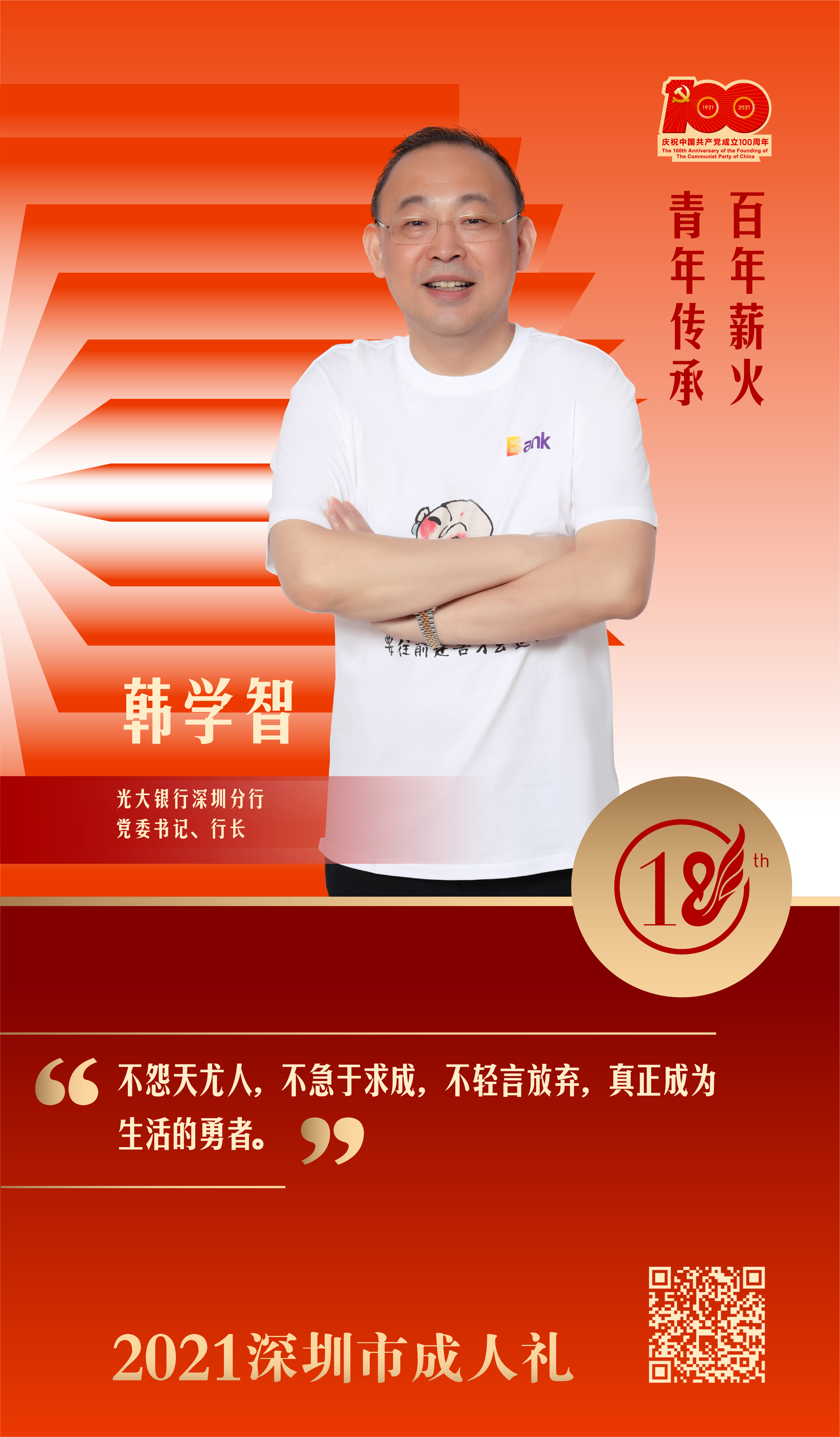 深圳新聞網(wǎng)·見圳客戶端2021年5月10日訊“以‘三勤四慎’提升青年生活幸福感,希望年輕人能勤于思考,善于思考,學(xué)會從思考中發(fā)現(xiàn)問題,解決問題,這樣才能取得更快的進(jìn)步?!痹?月7日拉開序幕的“百年薪火,青年傳承”2021深圳市成人禮系列活動中,光大銀行深圳分行黨委書記、行長韓學(xué)智作為青春代表,通過網(wǎng)絡(luò)渠道,為青年們送上飽含激情和期待的寄語“明信片”。
