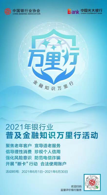 本次活動時間從2021年6月1日至6月30日,根據(jù)光大銀行深圳分行陽光服務(wù)(消費者權(quán)益保護(hù))辦公室負(fù)責(zé)人介紹,活動期間將老年人移動支付的知識宣傳教育、金融知識進(jìn)校園活動以及向金融消費者普及電信詐騙的危害和存在的多種形式,以及需要注意的風(fēng)險問題等主題進(jìn)行重點宣傳教育。對不同消費者群體組織開展有特色的宣傳教育活動,以群眾喜聞樂見、通俗易懂的方式,廣泛開展宣傳教育活動。