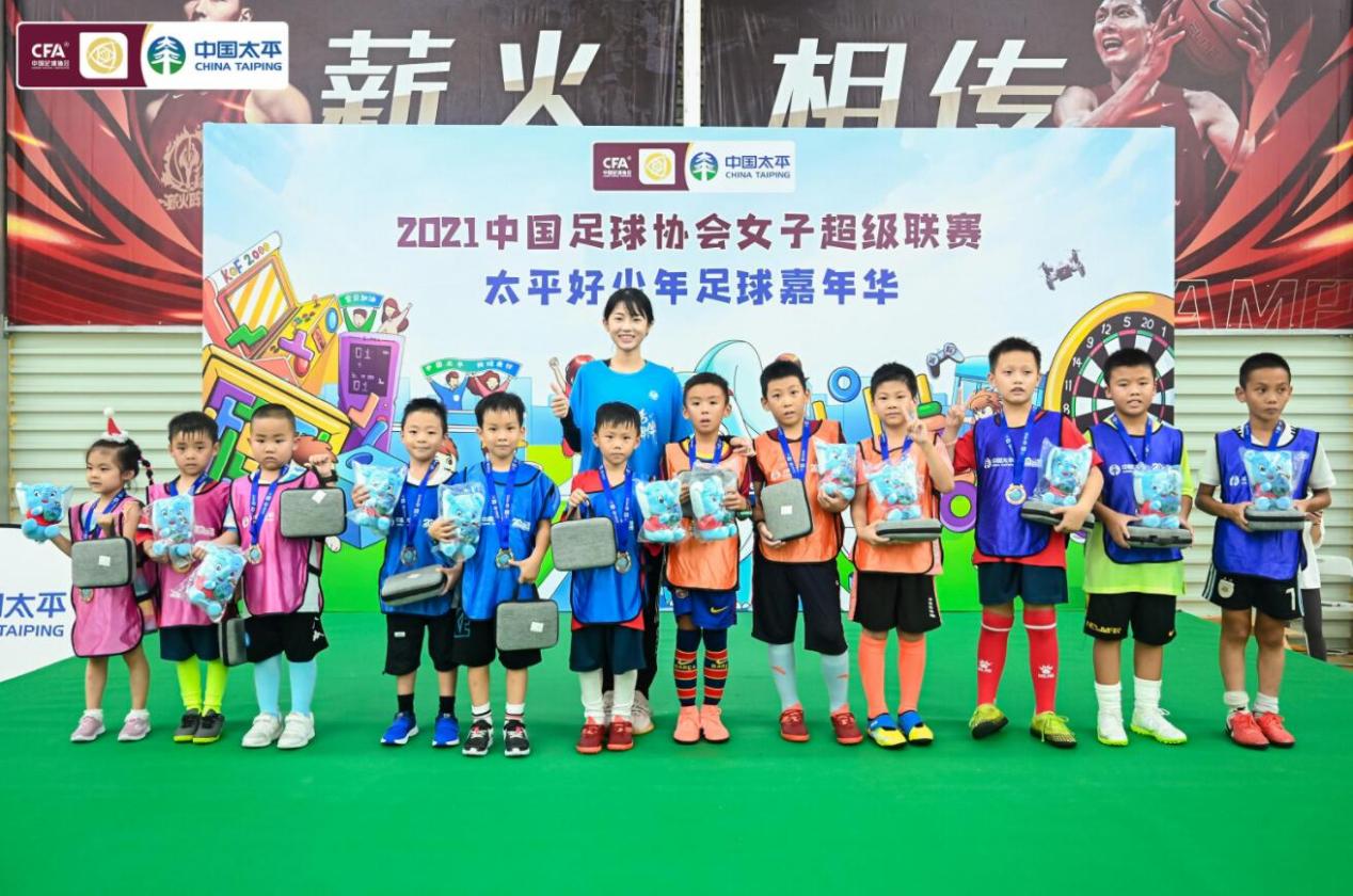 活動(dòng)現(xiàn)場(chǎng),5-10歲的兒童分組進(jìn)行1V1趣味氣墊足球賽,經(jīng)過(guò)4輪激烈角逐,從參賽選手競(jìng)選出12名選手被評(píng)為“太平好少年”稱(chēng)號(hào),由熊熙女士親自頒獎(jiǎng),并從優(yōu)勝者中抽取幸運(yùn)球童獲得女足大禮包。除了氣墊足球賽之外,現(xiàn)場(chǎng)的小選手們還體驗(yàn)了多項(xiàng)趣味互動(dòng)游戲,也收獲了精美的參與禮品。