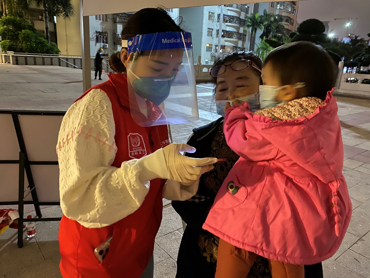 南山區(qū)連續(xù)發(fā)布多個(gè)通告,宇宙最強(qiáng)街道粵海街道已經(jīng)開展第十輪全員核酸檢測(cè)。華夏銀行深圳后海支行何濱舟第一時(shí)間響應(yīng)抗疫志愿服務(wù)倡議,主動(dòng)聯(lián)系粵海街道對(duì)接聯(lián)系人報(bào)名。她連續(xù)3天下班都堅(jiān)守在粵海街道香坊·萬豪廣場(chǎng)核酸檢測(cè)點(diǎn),重復(fù)說著“請(qǐng)大家排好隊(duì),保持一米距離,提前準(zhǔn)備好粵核酸,耐心等候”。在結(jié)束了一晚的志愿者工作后,她還主動(dòng)幫助小區(qū)物業(yè)清理防疫垃圾,不怕苦、不怕累的華夏精神得到社區(qū)的一致認(rèn)可。