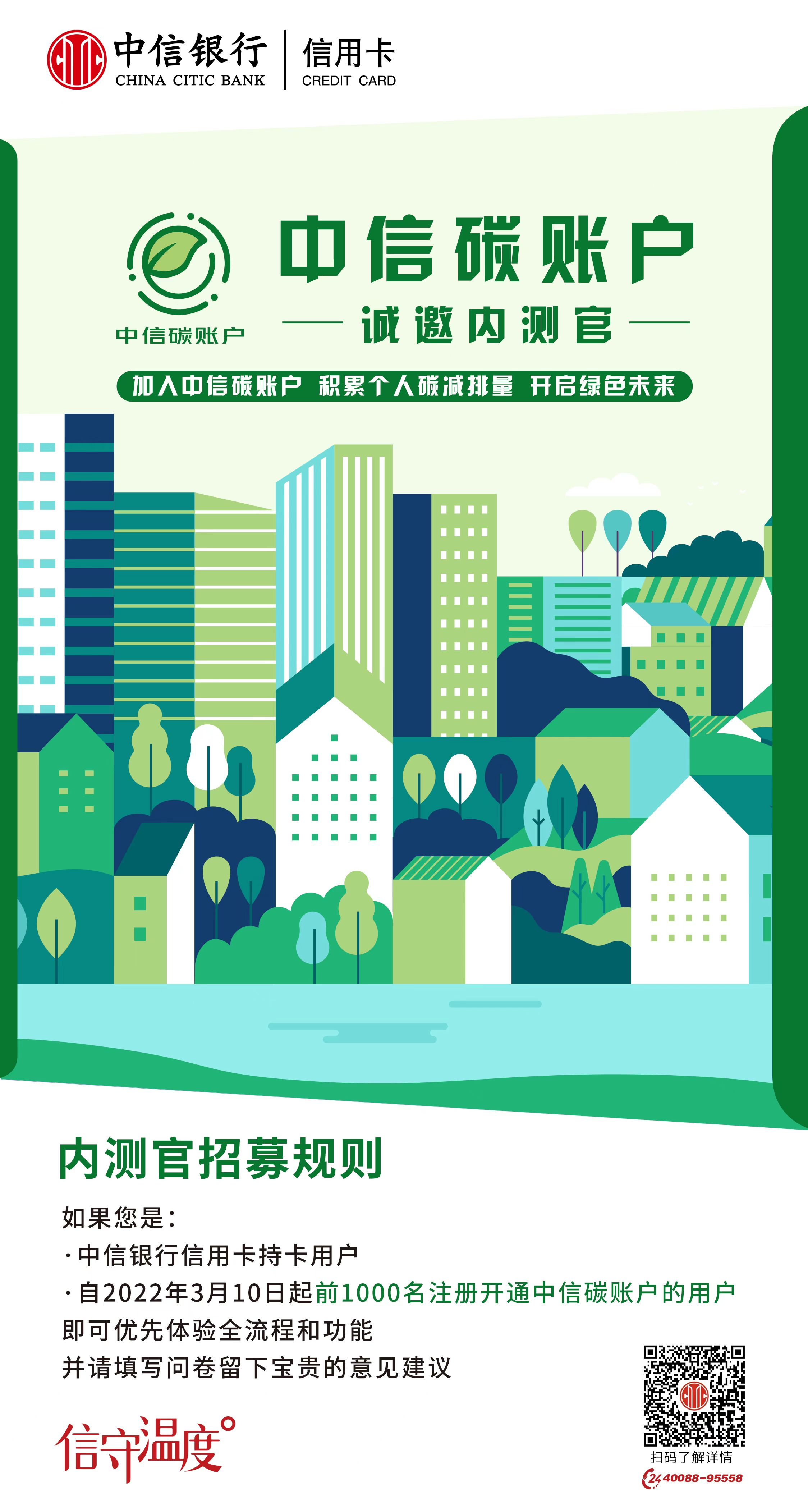 時(shí)值中國(guó)植樹(shù)節(jié)前夕,“中信碳賬戶”內(nèi)測(cè)版現(xiàn)已上線,于3月10日起公開(kāi)招募1000名用戶參與內(nèi)測(cè)版體驗(yàn),首批體驗(yàn)官登錄中信銀行信用卡“動(dòng)卡空間”APP,即可在線開(kāi)通個(gè)人碳賬戶,獲取關(guān)聯(lián)個(gè)人低碳行為的碳減排量,并可對(duì)碳賬戶的內(nèi)測(cè)版功能提供優(yōu)化建議。據(jù)中信銀行相關(guān)負(fù)責(zé)人介紹,目前,內(nèi)測(cè)版已經(jīng)上線生活繳費(fèi)網(wǎng)上辦理(含水費(fèi)、電費(fèi)、燃?xì)赓M(fèi)等)、申請(qǐng)電子信用卡、開(kāi)通電子賬單等低碳行為的碳減排量核算。即將上線的公開(kāi)版還將包含綠色出行、二手回收等更豐富的綠色低碳生活場(chǎng)景。