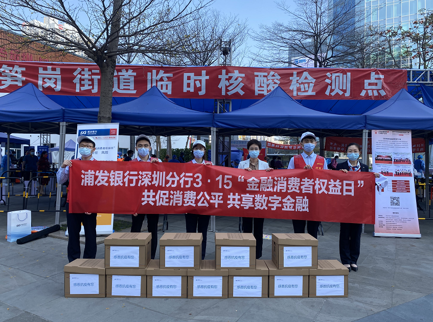 考慮到近期疫情反復,浦發(fā)銀行深圳分行組織轄內(nèi)多家網(wǎng)點聯(lián)合深圳市居民金融素養(yǎng)提升工程辦公室、社區(qū)工作站,前往核酸檢測點,展開“消保”與“抗疫”相結合的“消保防疫關愛站”系列活動。