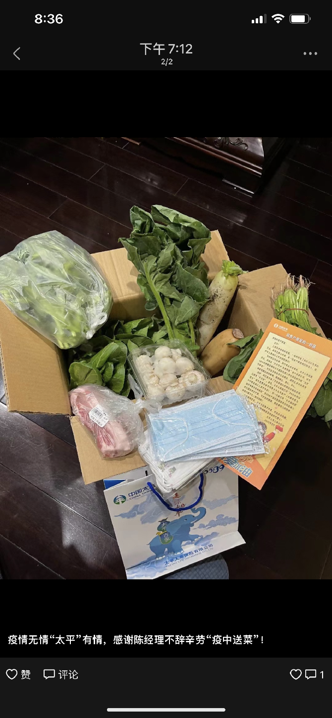 太平人壽代理人,紛紛化身太平守“滬”者,為疫情封控中的廣大客戶雪中送炭,切實解決了搶菜難的問題。據(jù)悉,活動推出至今,已有上百位客戶收到了“太平守護者”送上的暖心慰問,越來越多的客戶感受到了太平的溫暖。