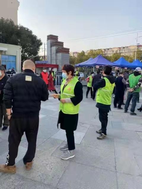 上圖:郭秀芳在街道核酸檢測(cè)中負(fù)責(zé)引導(dǎo)協(xié)調(diào)