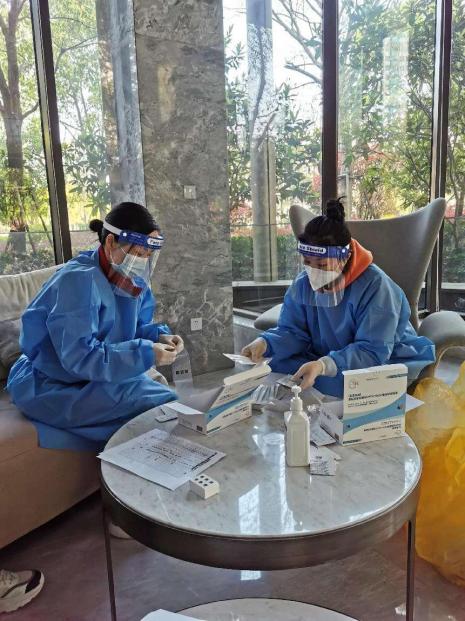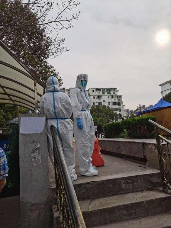 上圖:石蓉協(xié)助社區(qū)核酸檢測(cè)工作開(kāi)展