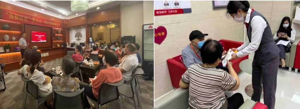 各網點邀請附近的老年客戶到行參與講座,以目前典型的養(yǎng)老騙局作為切入點,通過播放分行自制養(yǎng)老防詐小短片,以生動的語言向老年人揭示一些宣稱以房養(yǎng)老為名,誘騙老年人抵押房產購買“高收益”理財產品等進行非法集資詐騙的陷阱,向老年人普及新型詐騙趨勢,拓寬信息交流渠道,充分發(fā)揮銀行金融知識宣傳的網點效應。
